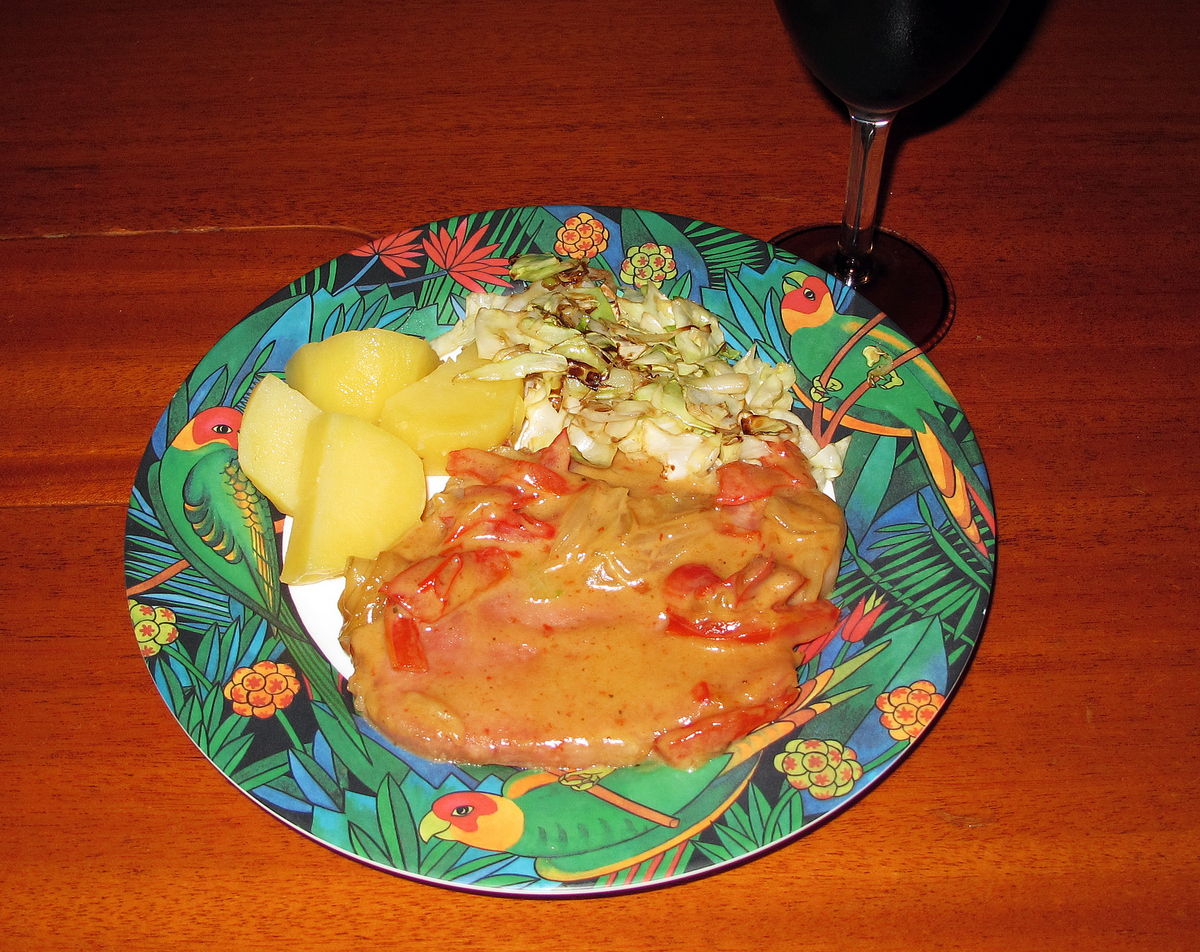 Serve with potatoes and a green vegetable.